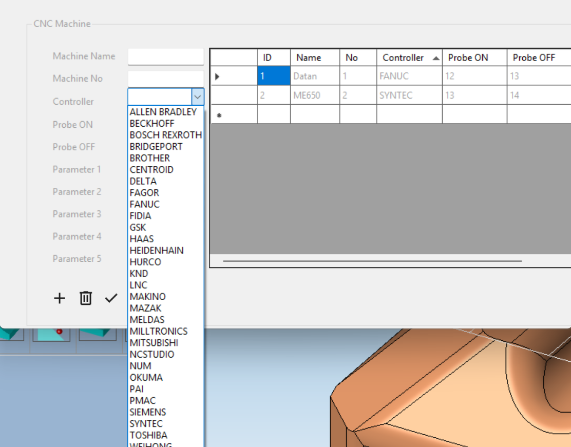 CNC brands and models in our ready-to-use library. FANUC, Siemens, Syntec, Mitsubishi... Select your machine from the list, mount your probe, start measuring. Zero programming, zero setup complexity.
